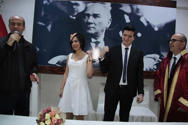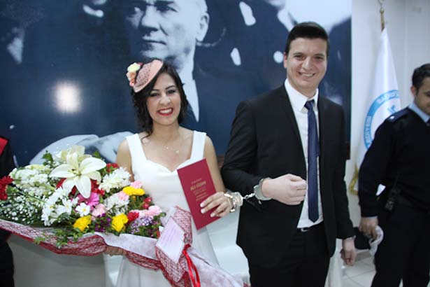 Düşüncelerini aktaran genç çift, 'Çok mutlu olduk. Ayrıca kelepçe takılması çok farklı bir duyguymuş.' dedi.