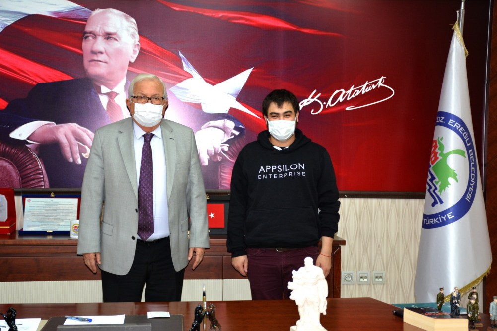 Başkan Posbıyık, başarısından dolayı daha önce bir mektup yazarak kutladığı genç girişimciyi bir kez daha tebrik ederek Ereğlili gençlerin ulusal ve uluslararası başarılarından gurur duyduğunu belirtti.