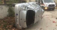 plakalı otomobil, kontrolden çıkarak bariyerlere çarptı. Çarpmanın şiddetiyle