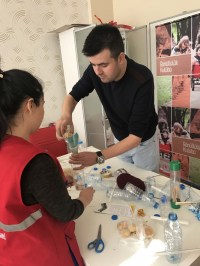 gençlik liderleri atık pet şişeleri kullanarak hem geri dönüşüme katkı