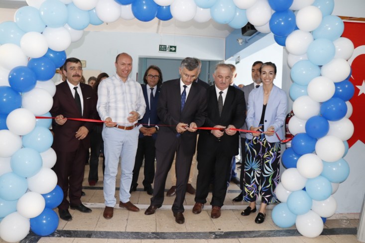 teşekkür ederek katılımcılarla birlikte Robotik Kodlama Laboratuvarı açılış