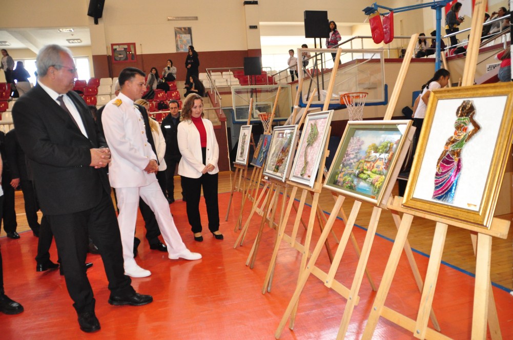 Törenin son bölümünde de Ereğli Kaymakamı Mehmet Yapıcı, Karadeniz Bölge Komutanı Tuğamiral Niyazi Uğur, Belediye Başkanı Halil Posbıyık ve diğer protokol katılımcıları; salon içine kurulan resim ve yöresel giysi sergilerini de ziyaret ederek, başarılar dileklerini ilettiler.