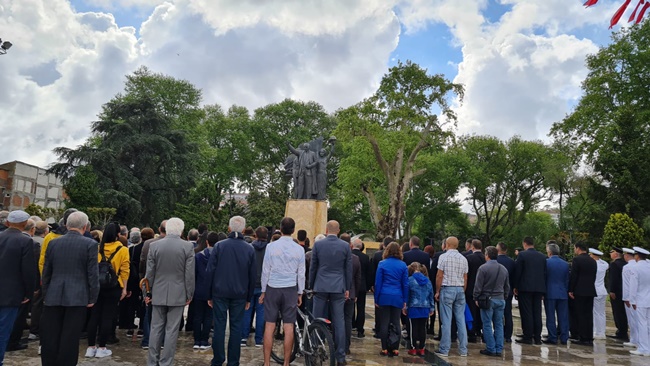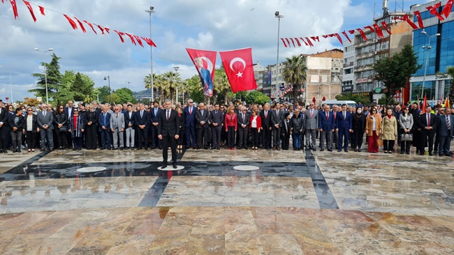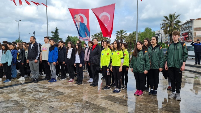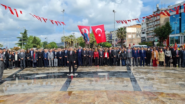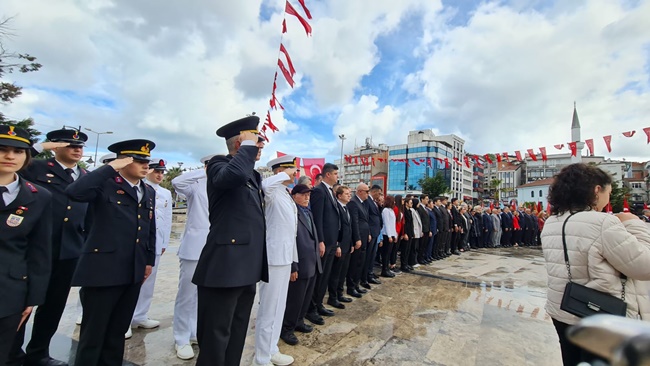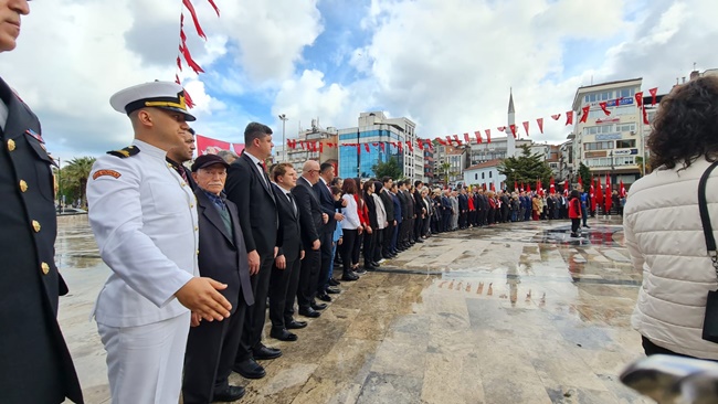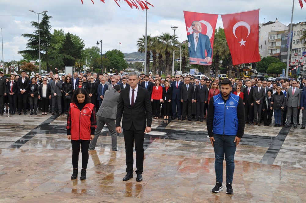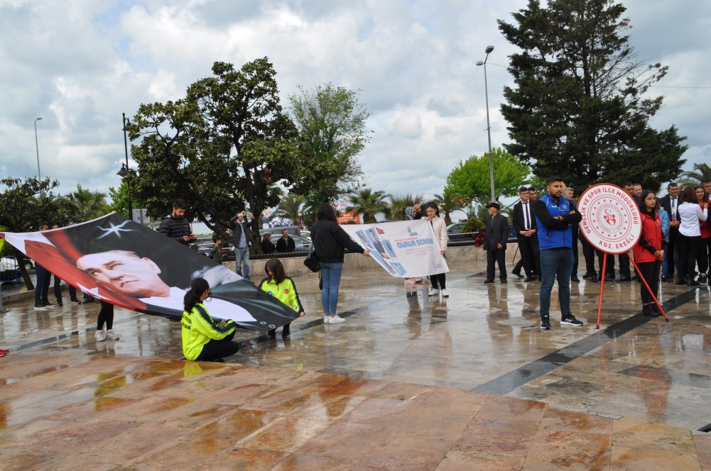 Sabah saat 09.30’da Atatürk Anıtı önünde, Karadeniz Ereğli’de Gençlik ve Spor İlçe Müdürlüğü tarafından hazırlanan ilk törende, İlçe Gençlik ve Spor İlçe Müdürü Adem Çelik tarafından müdürlük çelengi Atatürk Anıtı’na sunularak, saygı duruşunda bulunularak, İstiklal Marşımız okundu.