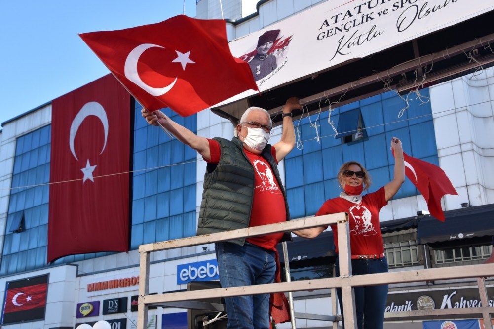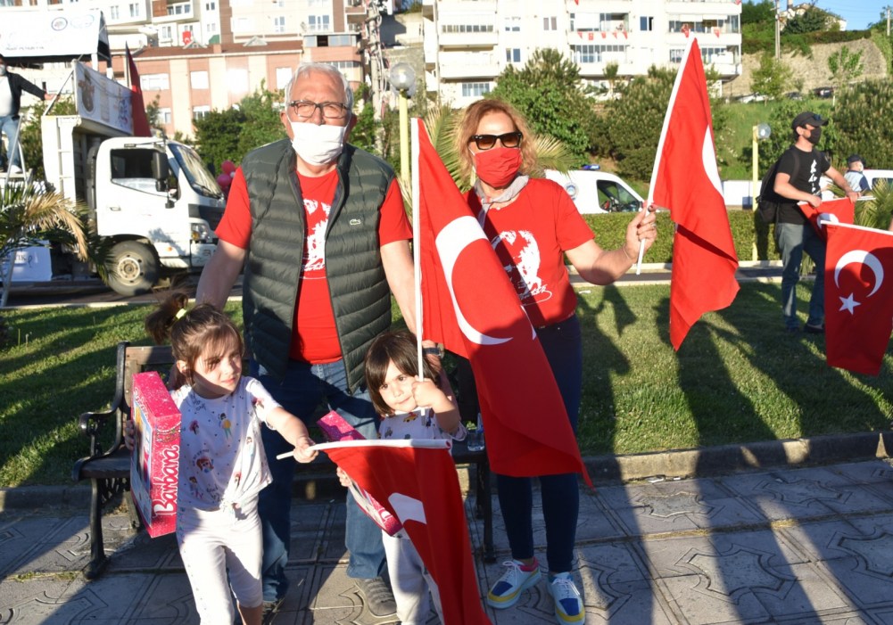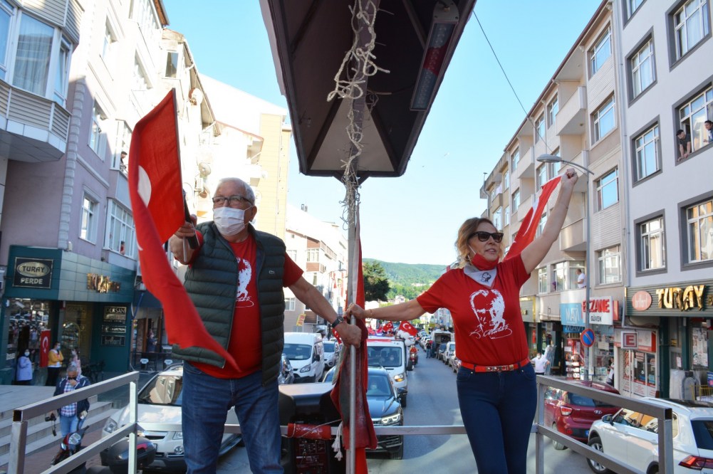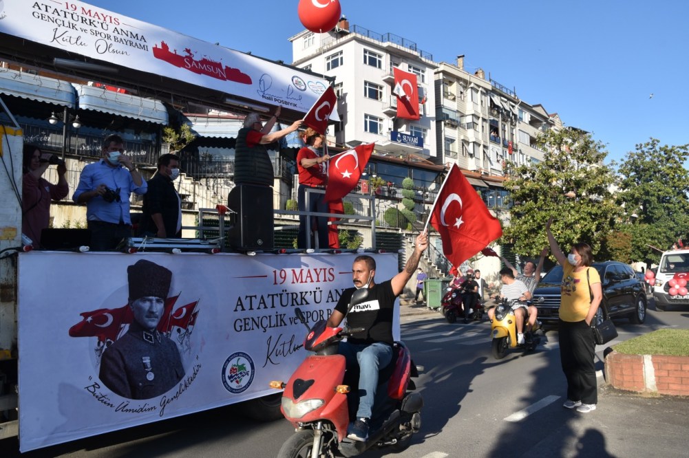 19 Mayıs Atatürk’ü Anma, Gençlik ve Spor Bayramı, pandemiye rağmen Kdz. Ereğli’de coşku ile kutlandı. Kdz. Ereğli Belediye Başkanı Halil Posbıyık, eşi Neriman Posbıyık ve belediye meclis üyeleriyle araç konvoyu yaparak halkın bayramını kutladı. Saat 19.19’da halkın balkonlardan, pencerelerden katılımıyla hep birlikte saygı duruşunda bulunup İstiklal Marşı okundu.
