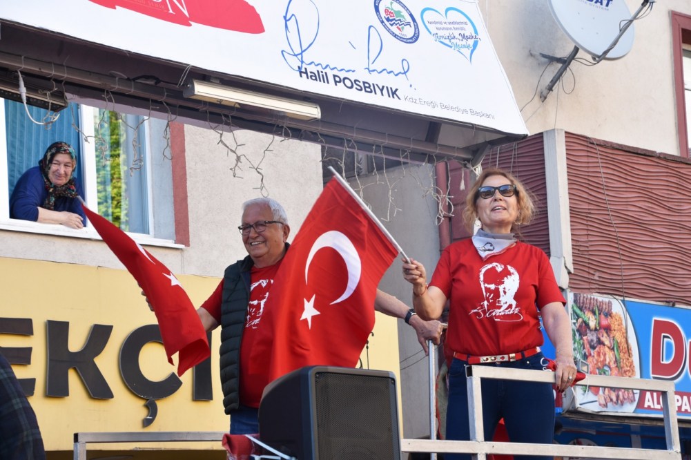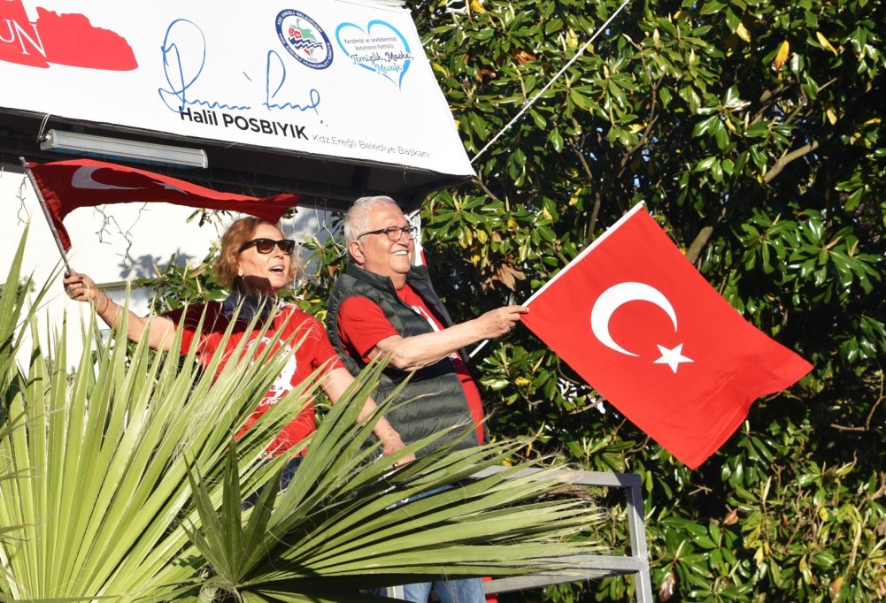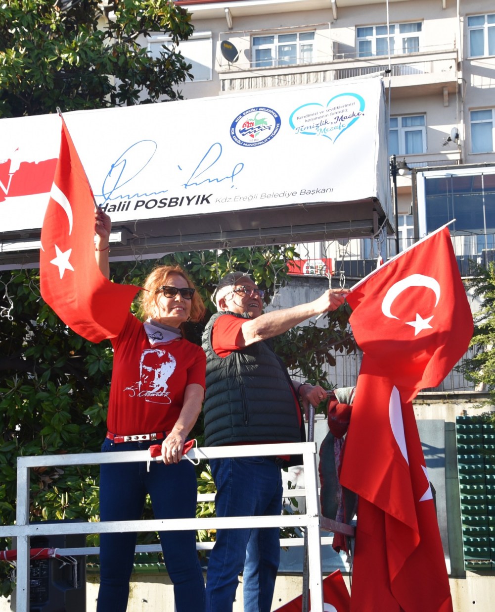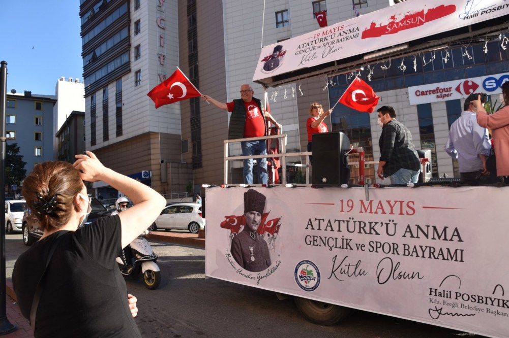 Kdz. Ereğli’de 19 Mayıs Atatürk’ü Anma, Gençlik ve Spor Bayramı coşkuyla kutlandı. Belediye Başkanı Halil Posbıyık, eşi Neriman Posbıyık ve belediye meclis üyeleriyle araç konvoyu yaparak halkın bayramını kutladı. Saat 19.19’da halkın balkonlardan, pencerelerden katılımıyla hep birlikte saygı duruşunda bulunup İstiklal Marşı okundu. Başkan Posbıyık, “Gençliğimize, halkımıza güveniyoruz” dedi.