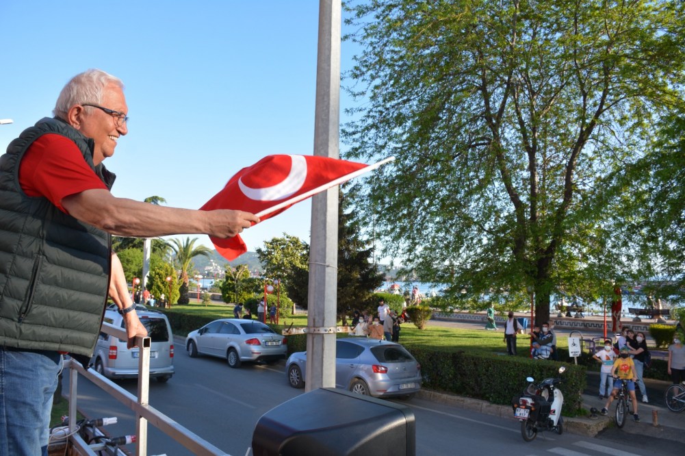 Biz Bağlık Karakolu’nun oradan Yöresel Evler’e kadar yürüdük. Belki çok kalabalık değildik pandemi dolayısıyla ama çevreden, balkonlardan bütün insanlar bize iştirak ettiler. O coşkuyu yılların politikacısı olarak çok net bir şekilde görebiliyorum.