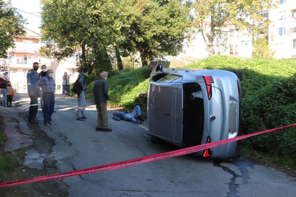 Zonguldak’ın Ereğli ilçesinde bir aracın sürücüsü geri geri çıkarken yayayı ezdi. Meydana gelen kazada otomobil ise bahçe taşlarına çarparak yan devrildi.