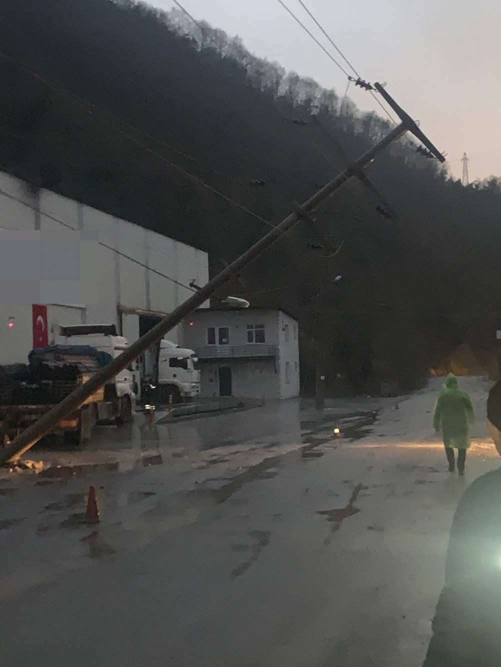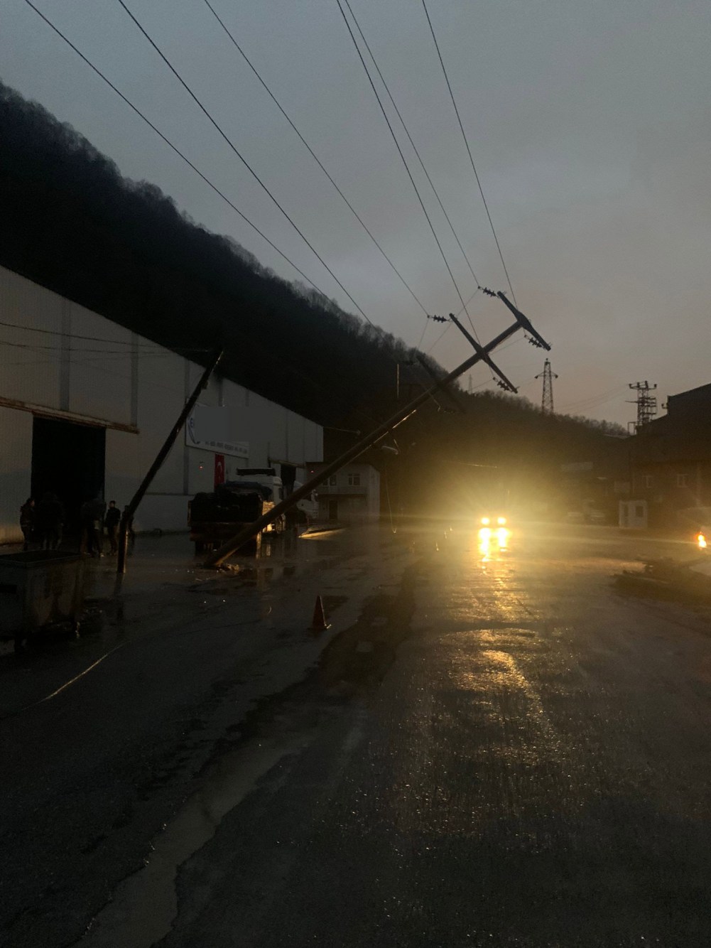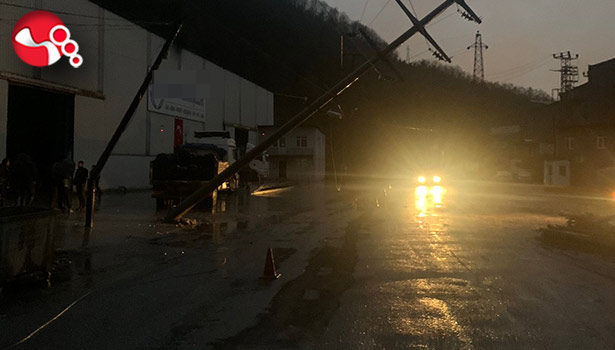 Karadeniz Ereğli’de meydana gelen trafik kazasında TIR elektrik direğini çarparak devirdi.