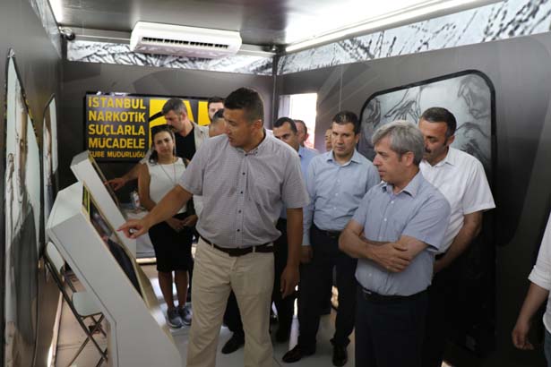 Bağımlılık ve uyuşturucunun bütün insanlığın sorunu haline geldiğini belirterek, "Bu ülkemizde de büyük bir sorun haline geldi. Modernleşme, şehirleşme arttıkça, insan yalnızlaştıkça birçok nedenlerden dolayı temininde de kolaylıklar arttıkça, şimdi biliyorsunuz tabletler, haplar şeklinde kimyasallarla yapılan uyuşturucular da var. Bütün bu nedenleri bir araya getirdiğinizde bağımlılık önemli bir sorun haline geliyor. Allah başa vermesin, empati yapabilmek lazım. Biz mesleğimizden dolayı da bu tür ailelerle ve çocuklarla karşılaşıyoruz. Çok vahim sonuçları olan, bütün ailenin huzurunu, mutluluğunu yok eden çok tehlikeli bir bağımlılık. Biz hem devlet yöneticileri olarak, hem polis, jandarma, güvenlik birimleri olarak, eğitimciler olarak toplumun her ferdi bununla mücadelede kendini görevli saymalı, elinden geleni de yapmalıdır. Bu ülkemiz açısından batılı ülkelere kıyasla çok üst seviyelerde, vahim durumlarda değil. Ancak risk olarak önümüzde duran bir konu, tehlike. Şehirlerimizde resmi görevlerimiz açısından uyuşturucu ile bağımlılıkla mücadele konularında herkes çalışmalarını yapıyor. Ama bunun her zaman yeterli olmadığını da görüyoruz. Her şekilde bağımlılığı engelleyici her türlü tedbir, insanların algısına etki edecek yöntemler, sözler kullanılmalıdır. Buradaki bu tırda yapılan çalışma da bunlarla etkili bir yoldur. Güzel bir örnektir. İstanbul Emniyet Müdürlüğümüze teşekkür ediyoruz. Böyle bir çalışmayı yapmışlar. Bunun asıl zor olanı teknik cihazların içine yerleştirilmiş olan, programlanmış olan konulardır. Vatandaşlarımızın gelip görmeleri gerekiyor diye düşünüyorum. Emniyet müdürümüzün kişisel girişimleri ve kurmuş oldukları irtibatlar ile bu çalışma şehrimize de gelmiş oldu. Kendisine teşekkür ediyorum" şeklinde konuştu.