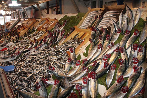 Doğru dürüst balık yok. Dün hamsi alayım dedim Marmara hamsisiydi muhtemelen, iriydi. Başka bir yerde de geçen yıldan dondurulmuş hamsiyi çıkarmışlar tezgaha.