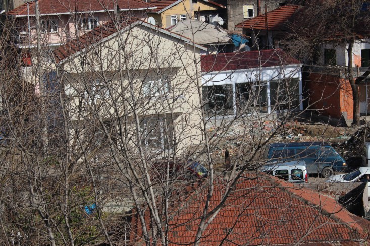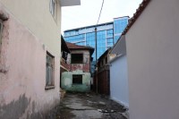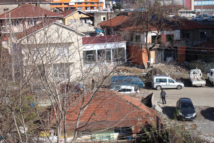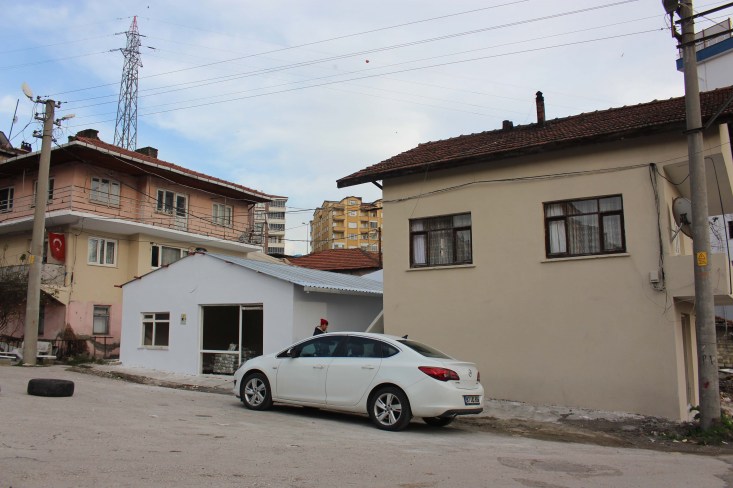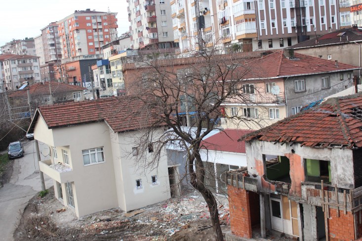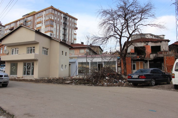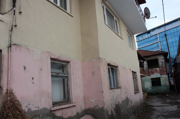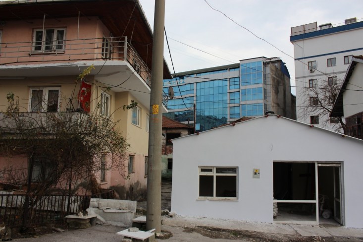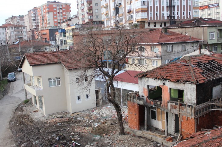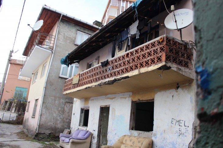 Tadilatı devam eden binaların hemen yanındaki binada yer