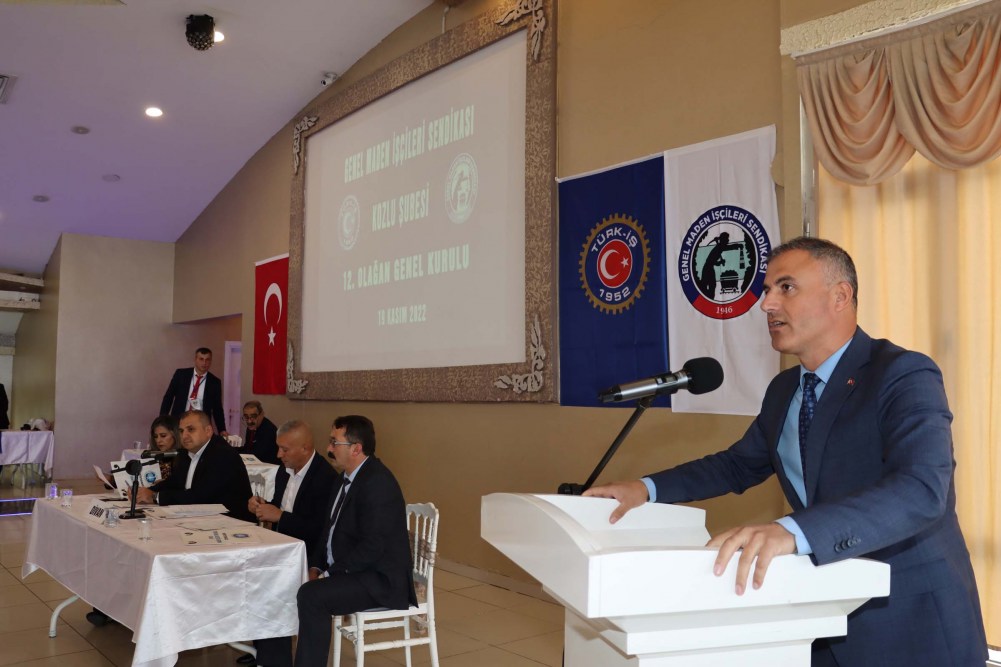 Amelebirliği Yönetim Kurulu Üyesi Yener Arslanbuğa, Amasra şehitlerine rahmet dileyerek başladığı konuşmasında şunları söyledi; “Genel Maden İşçileri Sendikamız Kozlu Şubemizin 12’nci Olağan Genel Kurulu’nun bölgemize, havzaya ve tüm maden camiasına hayırlı olmasını temenni ediyorum.