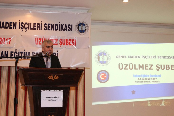 "Örgütlenme çalışmalarımız sürüyor. Aydın Çine'de örgütlendik. Arkadaşlarımızın bir kısmı işten atıldı. Diğerlerinin istifa etmesi için işveren baskı yapıyor. Arkadaşlarımızın bir kısmını son seminerimize, buraya çağırdık. Örgütlenme çalışmalarımız kesintisiz sürecek. TTK, MTA ve HEMA işyerleri için Toplu İş sözleşmeleri hazırlıklarımızı tamamladık. En kısa sürede TİS görüşmelerine başlayacağız.