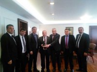 Bakan Yardımcısı Ali Rıza Alaboyun'a TTK'nın durumu ve çözüm önerileriyle ilgili bir dosya sunan GMİS Heyeti, ayrıca madenci heykeli ve baston hediye etti.