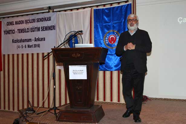 Bu seminerle yeni bir sürecin önünü açıyoruz. Bugün burada bu eğitim programımızla yeni bir dönemi başlatıyoruz. Daha doğrusu yeni bir sürecin önünü açıyoruz. Çok değerli hocalarımız var. Burada onları dikkatle dinleyecek, kafanıza takılan her soruyu soracak ve bu mücadeleye katkı vermek için kendimizi geliştirme gayreti içinde olacağız. Biz Genel Maden İşçileri Sendikası olarak büyük bir camiayız. Bu yıl 70'inci kuruluş yıldönümümüzü kutlayacağız. Türkiye'nin en eski sendikalarından biriyiz. Üretim tarihimiz ve tecrübe birikimimiz çok daha eskilere dayanır.