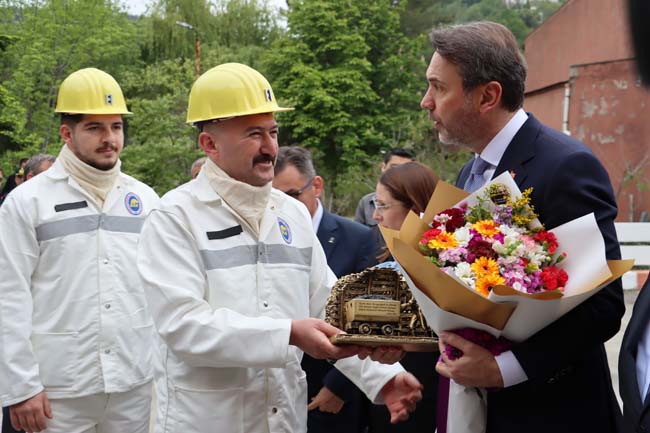 Enerji ve Tabii Kaynaklar Bakanı Alparslan Bayraktar, beraberinde Bakan Yardımcısı Abdullah Tancan ve Elektrik Üretim A.Ş. Genel Müdürü Zafer Benli ile birlikte TTK Amasra Müessese Müdürlüğü'nü ziyaret etti. Bakan Bayraktar'ı, Bartın Valisi Nurtaç Arslan, Ak Parti Bartın Milletvekili Yusuf Ziya Aldatmaz, TTK Genel Müdürü Muharrem Kiraz, genel müdür yardımcıları, GMİS Genel Başkan Yardımcısı İsa Mutlu, Genel Sekreter Yener Arslanbuğa, Amasra Şube Başkanı Ümit Çınar ve şube yöneticileri, kurum ve daire müdürleri ile maden işçileri karşıladı. Maden işçileri, Bakan Bayraktar'a madenci heykeli ile çiçek takdim etti.