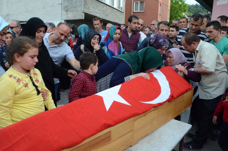 düzenlendi. Tören öncesi oğlunun tabutu başına gelen anne Yadikar Keskin,