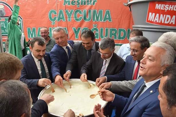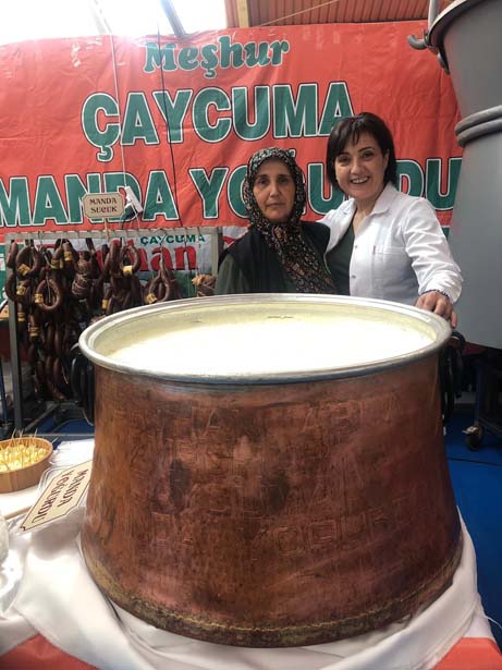 Zonguldak’ın Çaycuma İlçesinde 12- 14 Eylül tarihlerinde açılan 4. Gıda Tarım ve Hayvancılık Fuarı’nda Betül Kırımızı tarafından yapılan 250 kiloluk manda yoğurdu büyük ilgi gördü. Dev bakraca yapılan manda yoğurdu fuara katılan vatandaşlar tarafından büyük ilgi görürken fuara gelen vatandaşlar bol bol fotoğraf çektirdi.