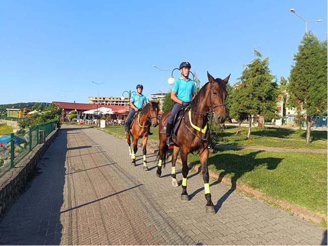 Görevlendirilen Tim Filyos beldesi sahil bölgesinde vatandaşların huzur ve güven içerisinde tatil yapmaları maksadıyla “Kadim, Efe ve İmre ” isimli atlar devriye atacaklar.