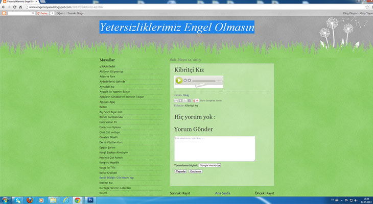 Bülent Ecevit Üniversitesi Ereğli Eğitim Fakültesi Okul öncesi 3. Sınıf öğrencileri Yusuf Buğra Mercimekçi, Mustafa Doğan, Havva Nur Gül, Ümüş Ergün, Esma Aras ve Ayşegül Yüksel, topluma hizmet uygulamaları dersi kapsamında görme engelli öğrenciler için sesli web sitesi kurdu. Görme engelli çocuklar ve öğrenciler için kitapları seslendirip kurdukları siteyi sesli hale getiren öğrencilerden Yusuf Buğra Mercimekçi, "Görme yetersizliğinin onlara engel olmaması için böyle bir çalışma yaptık. Çok sayıda hikaye ve masal seslendirdik. Siteye www.engelsizyasa.blogspot.com adresinden ulaşılabilinir" dedi.