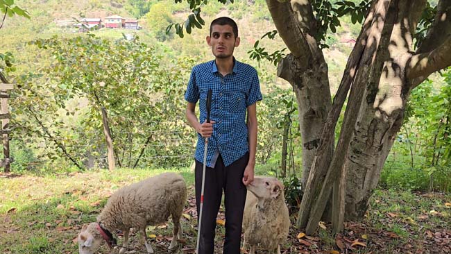 Zonguldak'ta iki koyun ile çobanlık yapmaya başlayan 25 yaşındaki görme engelli Selim Demirci, hayatını adeta koyunlarına adadı.