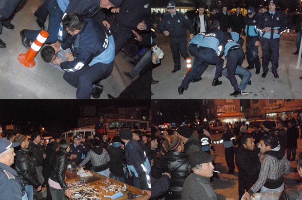 Ereğli Belediyesi zabıta ekipleri, belediye binası yanında satış yapmak istediği iddia edilen seyyar balıkçının terazisine el koymaya çalışınca ortalık birden karıştı. Terazisini vermek istemeyen balıkçının kendilerine karşı direnmesi sonucu balıkçıyı yere yatırmak isteyen zabıta ekipleri, balıkçıya 8 kişi ile müdahale etti. Yaşanan arbede sırasında balıkçının arkadaşının tezgahı pazar yerine kaçırmasının ardından olaylar burada da devam etti. Seyyar arabaya el koymak isteyen zabıtalar ile balıkçının olay yerine gelen arkadaşları arasında tartışma yaşandı. Arabayı vermek istemeyen balıkçının arkadaşlarına zabıta ekipleri müdahale etmeye kalkınca arbede çıktı.