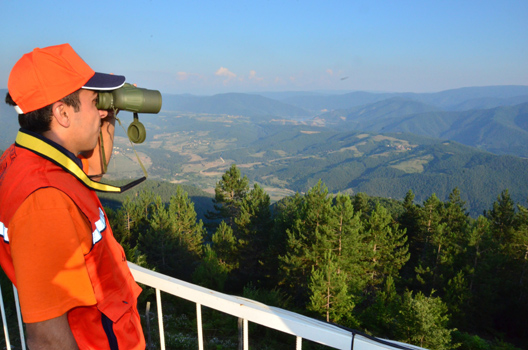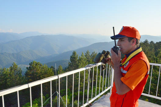 "Şu an bulunduğumuz yer Dirgine Orman İşletme Müdürlüğü Manzut Orman İşletme Şefliği içerisindeki Çaltepe yangın gözetleme kulesidir. 1 Temmuz itibariyle ülkemizde yangın sezonu aktif olarak başlamaktadır. Fiiliyatta 1 Mayıs itibariyle başlamaktadır. Ancak Mayıs ve Haziran ayının yağışlı geçmesinden dolayı 1 Temmuz itibariyle başlamaktadır. Bizim elimizdeki materyallerden en önemlisi de yangın gözetleme kulesidir. Bu sayede biz görebildiğimiz alan dahilinde büyük bir alanı gözetleyebiliyoruz. Herhangi bir yangın emaresinde yangın harekat merkezine, haberleşme noktasına irtibata geçerek yangın ekiplerimiz hemen harekete geçmektedir. Yangın gözetleme kulelerinde günlük periyodik olarak çevrimler yapılmaktadır. Günlük olarak saat başı, bazen de hava sıcaklığının çok olduğu zamanlarda yarım saatte bir hatta 15 dakikaya indirerek haberleşme sağlanmaktadır."