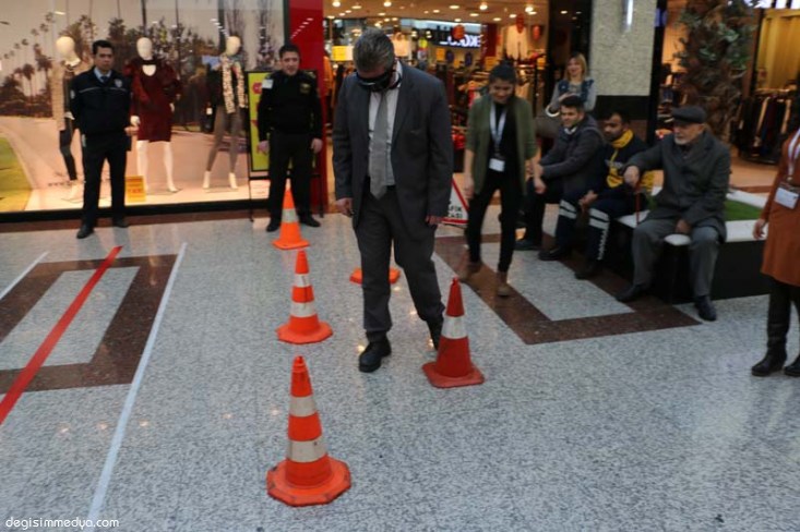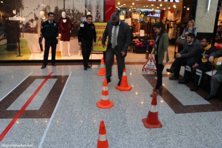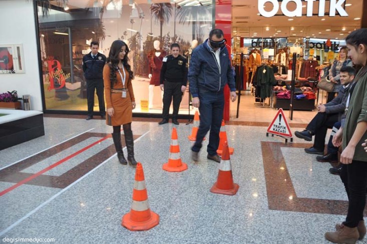 Bu çerçevede, Ereylin Alışveriş Merkezi'nde gerçekleştirilen etkinlikte, vatandaşlara 1.5 promil alkol etkisi yapan gözlük takılarak, uygulamalı alkollü yürüyüşü yaptırdıklarını anlatan Ahlat, desteklerinden dolayı ise proje koordinatörleri Okutman Hasan Çınar'ada teşekkür etti. Alışveriş merkezinde düz şerit ve dubalar ile parkur oluşturan öğrenciler, vatandaşlara taktıkları alkol gözlüğü ile yürümelerini sağladı. Bu sırada, projeye destek veren ve bilgiler veren Ereğli İlçe Emniyet Müdürlüğü'nde görevli Polis Memuru Okan Balıkçı, gözlerine taktığı cihaz ile düz şeritte yürümeye çalıştı. Bazı vatandaşların ise cihazı taktıktan sonra düz çizgide yürüyemedikleri gözlendi. Aynı şekilde gözlük takılı şekilde sürahiden bardağa su doldurmaya çalışan bazı vatandaşlar da suyu bardağa boşaltmakta zorlandıkları gözlendi. Taktıkları cihaz nedeniyle 1.5promil alkollü konumuna geçen vatandaşların hal ve tavırları da vatandaşların gülümsemelerine neden oldu. Gözlükleri takan bir kişi ise yolun bittiğini göremeyince iş yerinin camına çarptı.
