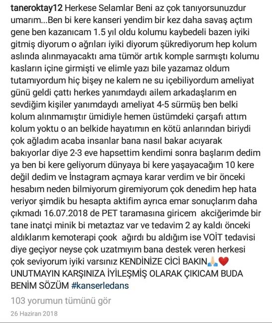 Zaman zaman tedavisiyle ilgili sosyal medya hesabından paylaşımlarda bulunan Oktay, yaklaşık 1 yıl önce yaptığı paylaşımında kanseri bir kez yendiğini belirterek bir kez daha yeneceğini ifade etmişti. Taner Oktay, aynı paylaşımında, kendisinden iyi haber bekleyenlere "Karşınıza iyileşmiş olarak çıkacağım" diyerek hem kendisine hem de takipçilerine moral vermişti.