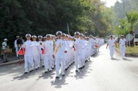 boyunca yürüdü. 'Tören yürüyüş kararı' ile yol alan denizciler, söyledikleri