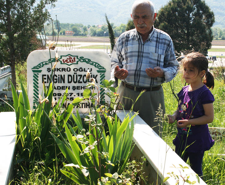 Türkiye Taşkömürü Kurumu (TTK) Karadon Müessese Müdürlüğü maden ocağında 17 Mayıs 2010'daki patlamanın ardından 8 ay sonra cesedi çıkarılan madenci Engin Düzcük, ölümünün 3.yıldönümünde mezarı başında babası, eşi ve çocukları tarafından dualarla anıldı.