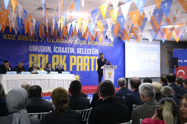 AK Parti Karadeniz Ereğli 7. Olağan Genel Kurulu, ilçedeki bir düğün salonunda gerçekleştirildi. Divan Başkanlığına AK Parti Samsun Milletvekili Ersan Aksu'nun yaptığı kongre saygı duruşunun ardından İstiklal Marşı'nın okunmasıyla başladı. Kongrede video gösteriminin gerçekleştirilmesinin ardından İlçe Başkanı Mücahit Andiç, AK Parti Milletvekilleri Ahmet Çolakoğlu, Saffet Bozkurt ve Muammer Avcı ile İl Başkanı Mustafa Çağlayan konuşma yaptı.