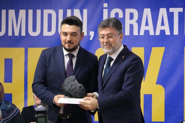 Konuşmaların ardından güven tazeleyen Mücahit Andiç tarafından Bakan Yumaklı'ya kömür heykeli takdim edildi.