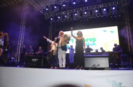 Zonguldak'ın Ereğli İlçesi'nde düzenlenen 21. Uluslararası Sevgi, Barış, Dostluk Kültür ve Sanat Festivali'nde sahneye çıkan sanatçılar Gülşen ve Volkan Konak, hayranlarını coşturdu.