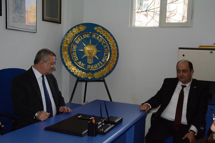 beraberindeki heyet ile AK Parti Gülüç Belde başkanlığına geçti. Burada