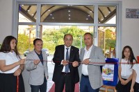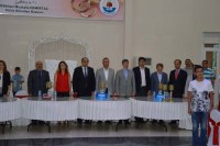 İlçe Milli Eğitim Şube Müdürü Bahattin Girgin'in açılış kurdelesini kesmesi ve