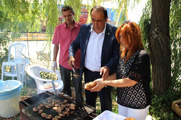 geçip köfte pişiren Başkan Demirtaş, çocuklara ikramlarda bulundu. Kendilerine