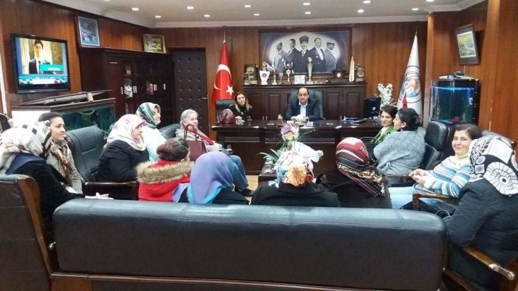 Zonguldak'ın Ereğli ilçesine bağlı Gülüç Beldesi'nde belediye ve Kdz. Ereğli Halk Eğitim Müdürlüğünün ortaklaşa düzenlediği kurslara katılan bayanlar Belediye Başkanı Gökhan Demirtaş'ı makamında ziyaret ederek desteklerinden dolayı teşekkür etti.