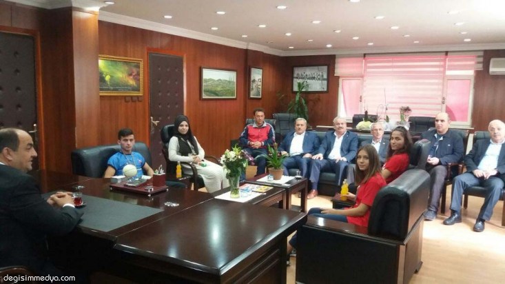 Belediye Başkanı Gökhan Demirtaş'a sunan sporcular, kendilerine verdiği