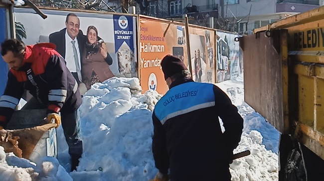 Zonguldak’ın Ereğli ilçesine bağlı Gülüç Belediyesi, yoğun kar sonucu kapanan yolları açmak için çalışmalarını aralıksız sürdürüyor.