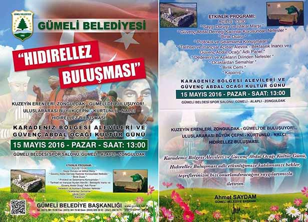 Alevileri ve Güvenç Abdal Ocağı Kültür Ocağı'nın organize ettiği "İnanç Tarihsel ve inançsal açıdan Alevilik ve Bektaşilik inancı ve Güvenç Abdal Ocağı" konulu panel 15 Mayıs 2016 tarihinde Gümeli Beldesinde yapılacak.