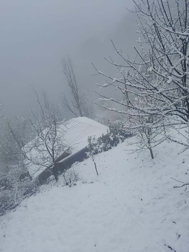 Zonguldak'ın yüksek kesimleri olan Bacaklı Yayla ve Gümeli Beldesi'nin tepelerine kar yağışı etkili oldu