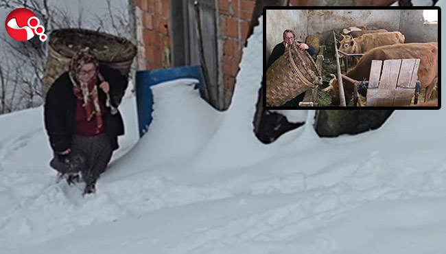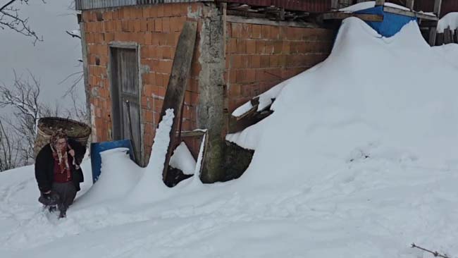 Zonguldak'ın Alaplı ilçesine bağlı, 900 rakımlı Gümeli beldesinde yaşayan vatandaşlar, yarım metreyi bulan kar yağışı altında hayvancılık yapmaya devam ediyor.
