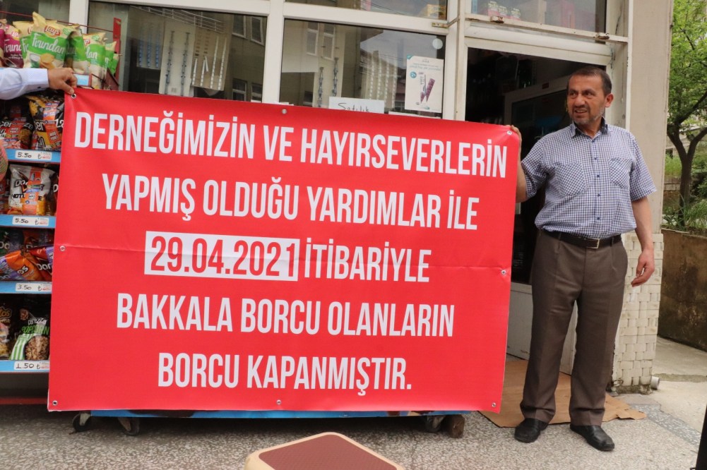 Zonguldak’ın Ereğli ilçesi Gümüşhaneliler Derneği, Hayırseverler ve bakkal sahibi Orhan Öztürk’ün de katkıları ile bakkalın veresiye defterini satın aldı. Mahalle borçlarının kapatılması ile ilgili açıklamada bulunan Gümüşhaneliler Dernek başkanı Davut Karakaş her derneğin böyle projelere imza atması gerektiğini söyledi.