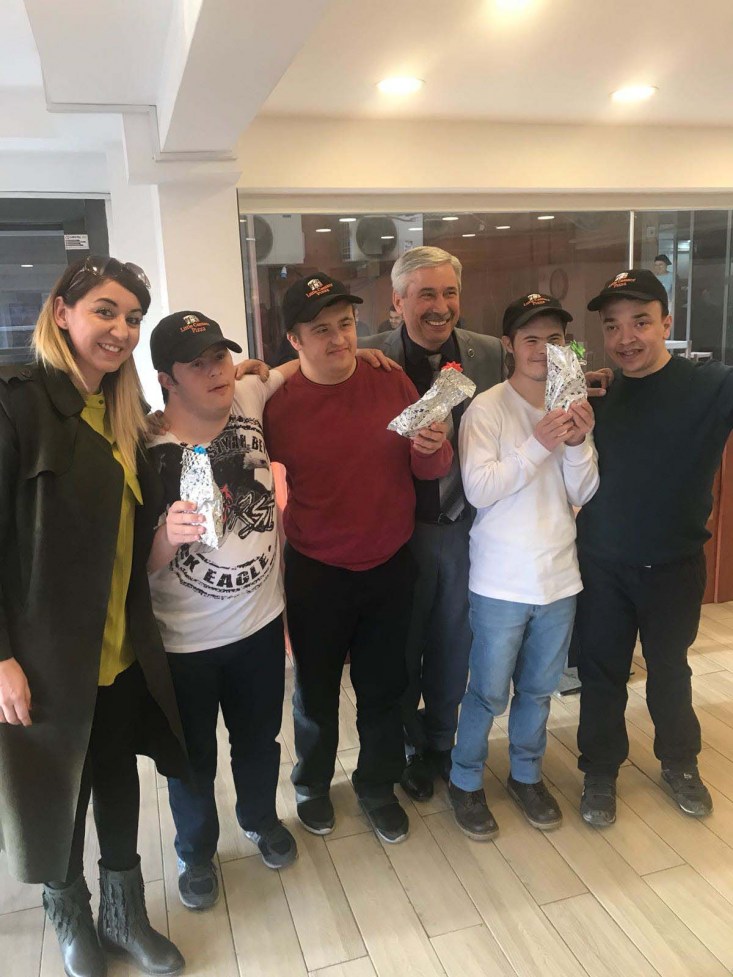 Başkanı Kerim Yılmaz'da Down Sendromlu öğrencileri yalnız bırakmadı. Pizzalarını