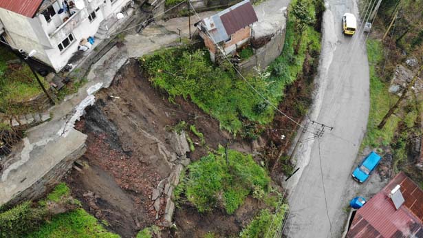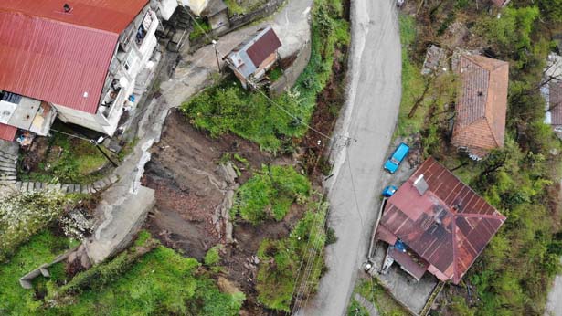Drone ile havadan görüntülenen ve yolun bir kısmını kapatan heyelan sonrası yetkililerin temizleme çalışması yapması bekleniyor.