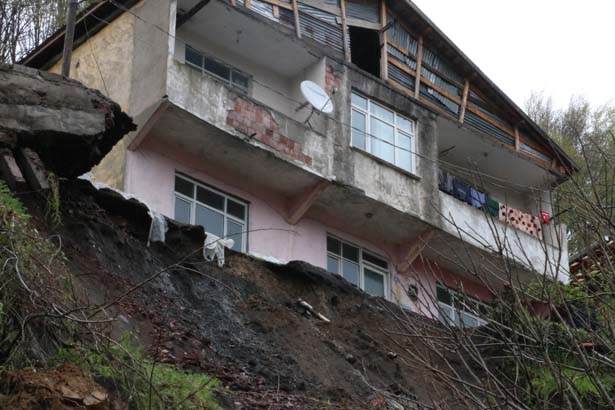 Zonguldak'ta duydukları gürültü sonrası panikle sokağa çıkan 4 kişilik aile, evlerinin önünde heyelan olduğunu görünce hayatlarının şokunu yaşadı. Yıkılma tehlikesi yaşayan evlerini boşaltan ailenin imdadına ise komşuları yetişti.