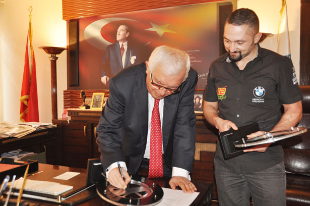 Güney, Başkan Posbıyık'tan aldığı kupalara imza atmasını