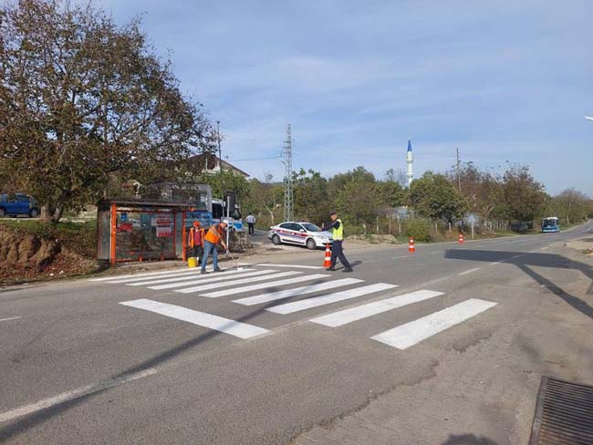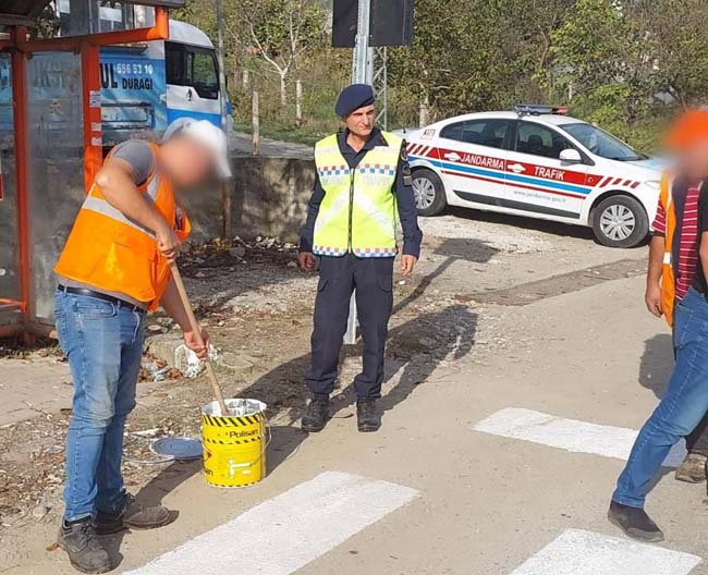 Zonguldak İl Jandarma Komutanlığı Trafik Jandarması Timlerince, Zonguldak Bülent Ecevit Üniversitesi Devrek Kampüsü önünde bulunan Yaya ve Okul Geçidinin, öğrenci ve vatandaşların karşıdan karşıya güvenli bir şekilde geçişleri için boyama işlemleri yapıldı.
