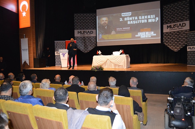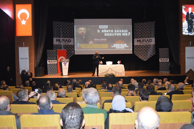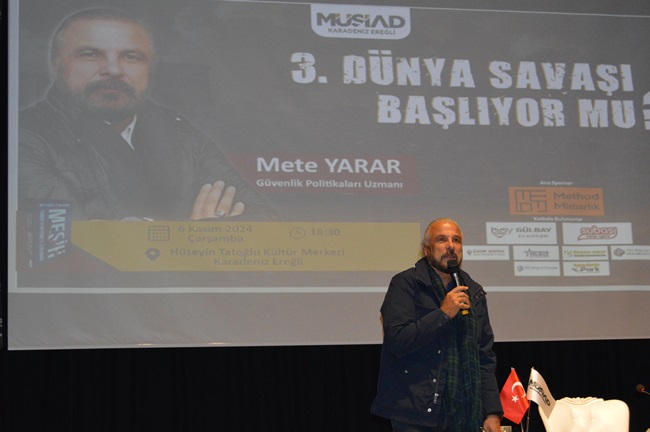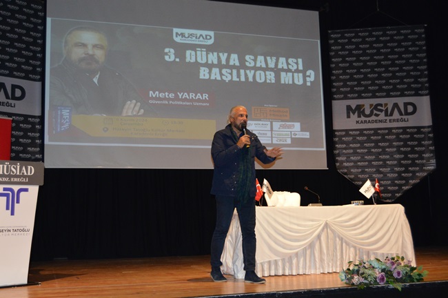 Müstakil Sanayici ve İşadamları Derneği (MÜSİAD) Kdz. Ereğli Şubesi tarafından Güvenlik Politikaları Uzmanı Mete Yarar’ın konuşmacı olduğu 3. Dünya Savaşı Başlıyor mu? adlı konferans düzenlendi.